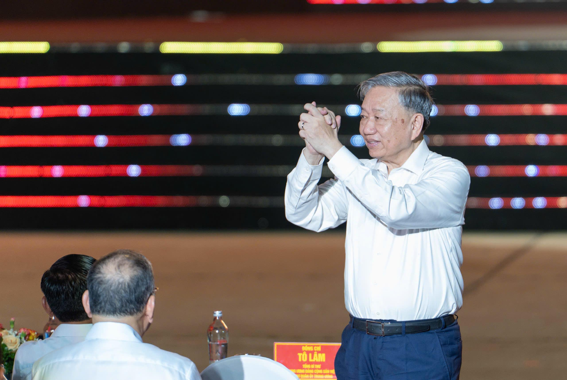 Tổng Bí thư Tô Lâm, Bí thư Quân ủy Trung ương; Ủy viên Bộ Chính trị, Thường trực Ban Bí thư Trần Cẩm Tú dự chương trình tại điểm cầu Hà Nội. Ủy viên Bộ Chính trị, Thủ tướng Chính phủ Phạm Minh Chính dự chương trình tại điểm cầu thành phố Huế. Ủy viên Bộ Chính trị, Chủ tịch Quốc hội Trần Thanh Mẫn dự chương trình tại điểm cầu Thành phố Hồ Chí Minh.