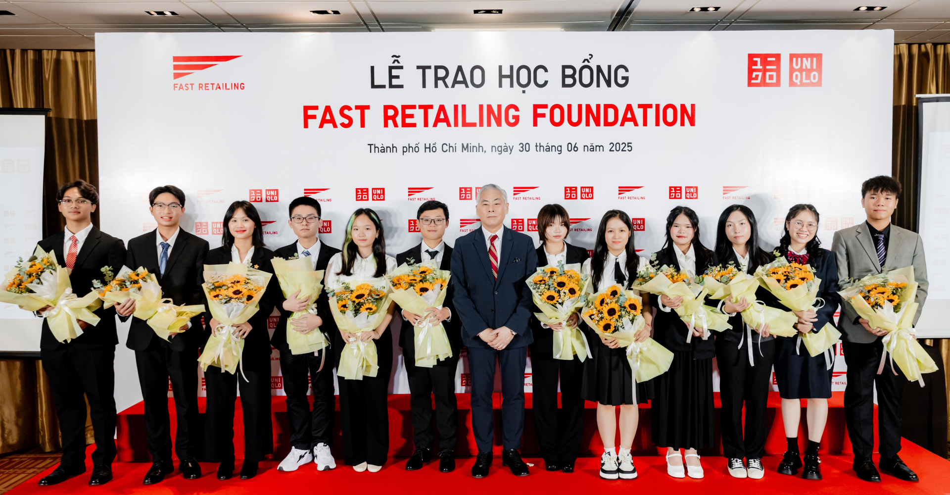 Ngày 30/6 ,Tập đoàn Fast Retailing, công ty mẹ của thương hiệu UNIQLO chính thức công bố danh sách 12 học sinh Việt Nam nhận học bổng từ Quỹ Fast Retailing năm 2025.