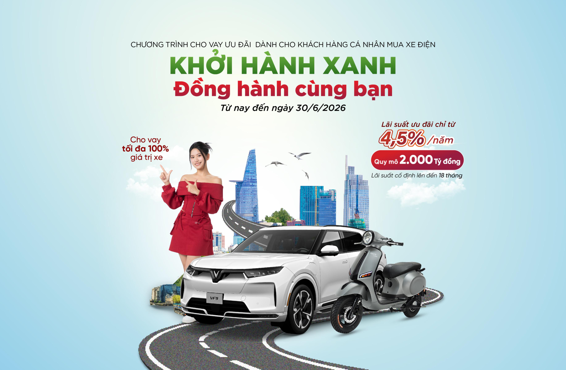 Mới đây, Agribank đã triển khai chương trình cho vay ưu đãi “Khởi hành xanh - Đồng hành cùng bạn” với quy mô tín dụng lên tới 2.000 tỷ đồng, dành cho khách hàng cá nhân có nhu cầu vay mua ô tô và xe máy điện. Chương trình áp dụng lãi suất ưu đãi từ 4,5%/năm, cố định đến 18 tháng, hỗ trợ vay tối đa 100% giá trị xe. Khách hàng có thể lựa chọn vay theo từng lần hoặc theo hạn mức quy mô nhỏ. Chương trình được triển khai từ nay đến hết ngày 30/6/2026 hoặc đến khi giải ngân hết hạn mức.
