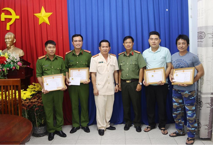 Các cá nhân được Giám đốc Công an tỉnh khen thưởng gồm: Thiếu tá Châu Văn Điệp và Đại úy Lời Văn Trí, cán bộ Đội điều tra Tổng hợp, Công an thành phố Long Xuyên và anh Đỗ Văn Thừa, anh Trương Thái Hoàng Tuấn, cùng trú tại phường Đông Xuyên, thành phố Long Xuyên.