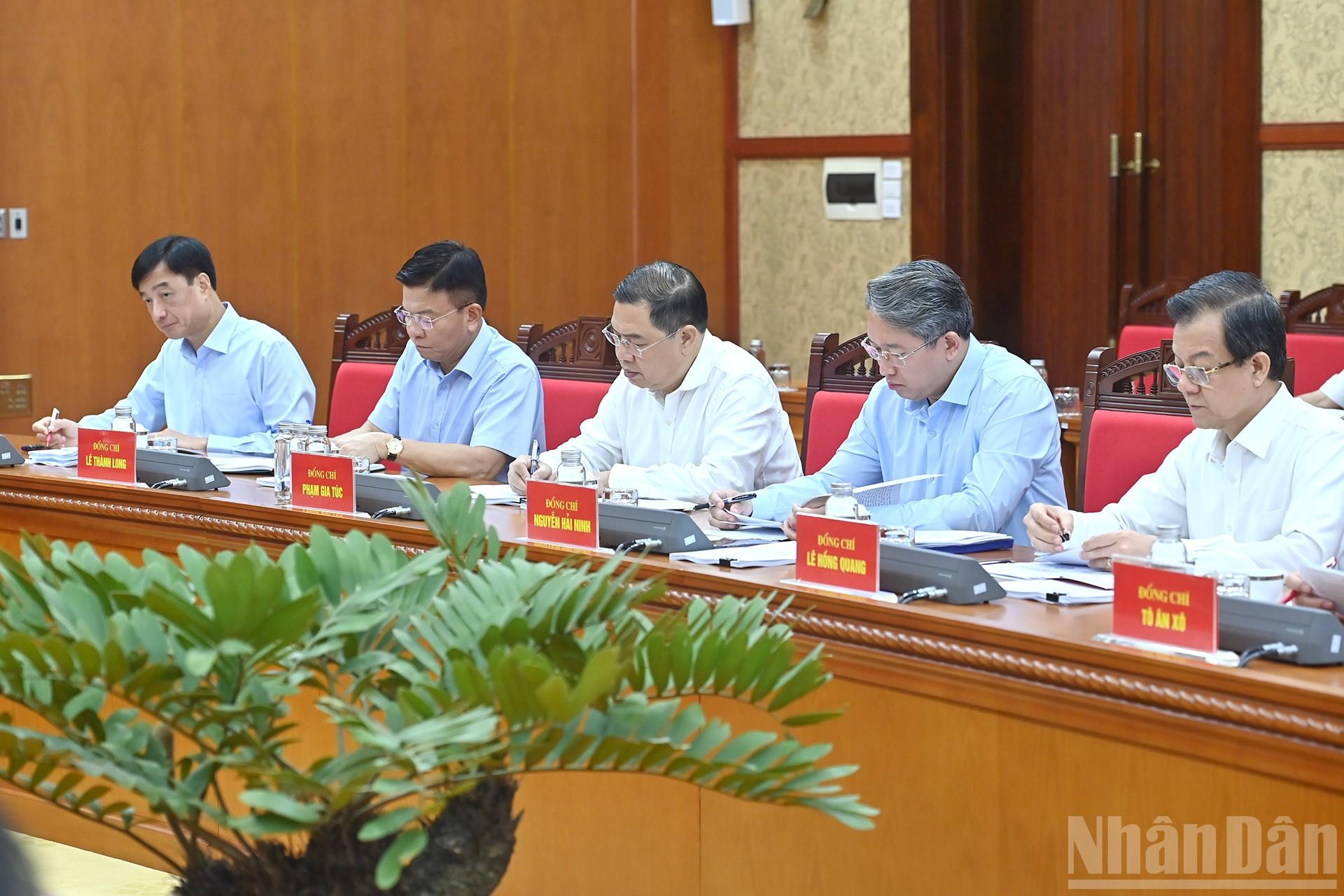 [Ảnh] Tổng Bí thư Tô Lâm làm việc với Ban Thường vụ Đảng ủy Chính phủ về Luật Đất đai (sửa đổi) và các luật liên quan