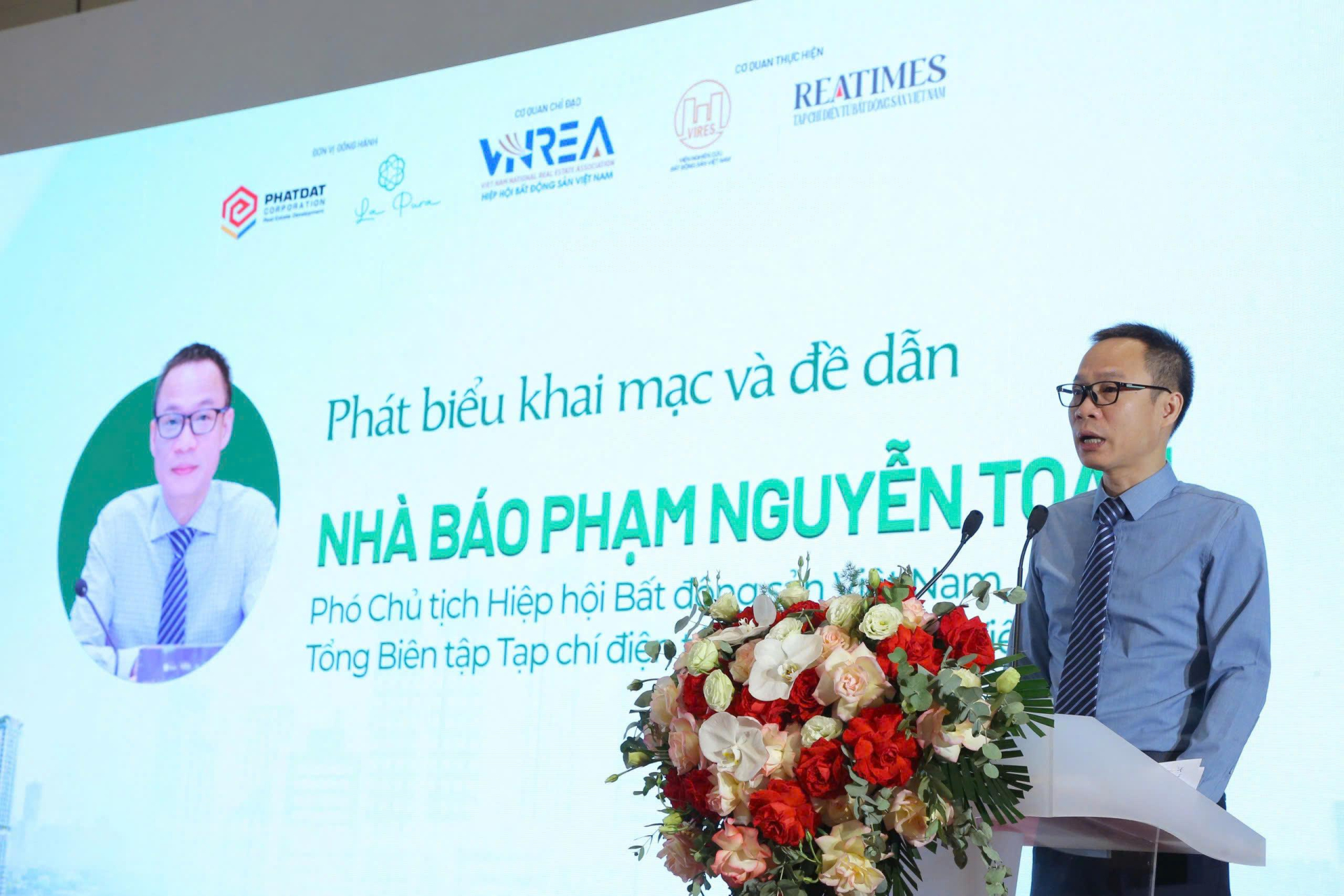 Phát biểu đề dẫn, Nhà báo Phạm Nguyễn Toan - Phó Chủ tịch Hiệp hội Bất động sản Việt Nam, Tổng Biên tập Tạp chí điện tử Bất động sản Việt Nam cho biết, kể từ ngày 1/7/2025, với việc vận hành mô hình chính quyền đô thị hai cấp và chính thức hợp nhất không gian phát triển giữa TP.HCM, Bình Dương và Bà Rịa - Vũng Tàu, chúng ta đã chứng kiến sự ra đời của một thực thể đô thị hoàn toàn mới, đó là "TP.HCM mới" - siêu đô thị đầu tiên của Việt Nam.