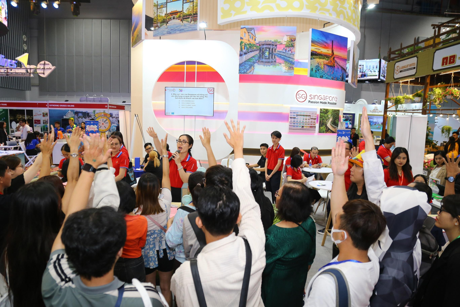 Cụ thể, khách mua tour Singapore hoặc tour Hàn Quốc, nhận thêm quà tặng từ Tổng cục Du lịch các nước Singapore (STB), Hàn Quốc (KTO). Không chỉ thế, khách tham gia tương tác tại gian hàng còn được tặng chân dung tò he do nghệ nhân Lê Xuân Tùng thực hiện và có cơ hội trúng nhiều phần quà bất ngờ qua các trò chơi, hoạt náo sôi nổi.