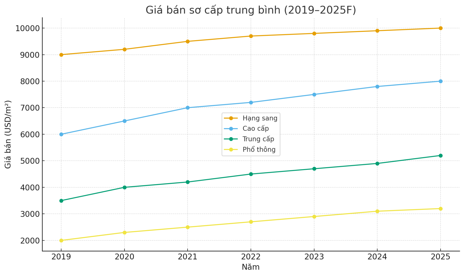 Về giá bán, trong quý, thị trường căn hộ tiếp tục ghi nhận xu hướng tăng giá sơ cấp, đặc biệt tại các dự án mở bán mới với mức tăng trung bình 5-8% so với mặt bằng chung.