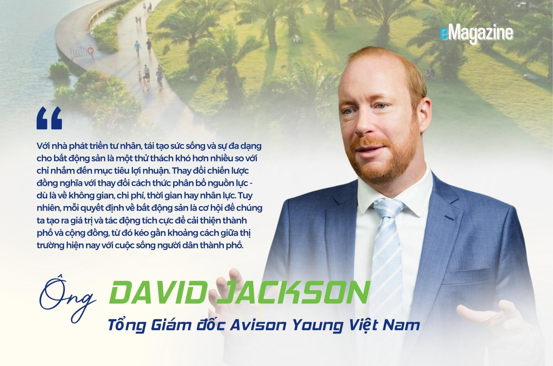 Theo ông David Jackson – Tổng Giám đốc Avison Young Việt Nam những dự án dành quỹ đất đáng kể cho mảng xanh không chỉ thể hiện tầm nhìn dài hạn của chủ đầu tư, mà còn mang lại giá trị gia tăng bền vững cho người sở hữu. “Với người mua ở thực, họ được thúc đẩy tạo lập cuộc sống lành mạnh, bền vững toàn diện từ nhà ra phố. Với nhà đầu tư, các sản phẩm nhà ở thấp tầng trong dự án bất động sản có tiềm năng tăng giá tích cực nhờ vào yếu tố không gian biệt lập và số lượng có hạn, từ đó đem lại thanh khoản và lợi nhuận đầu tư hấp dẫn trong dài hạn”.