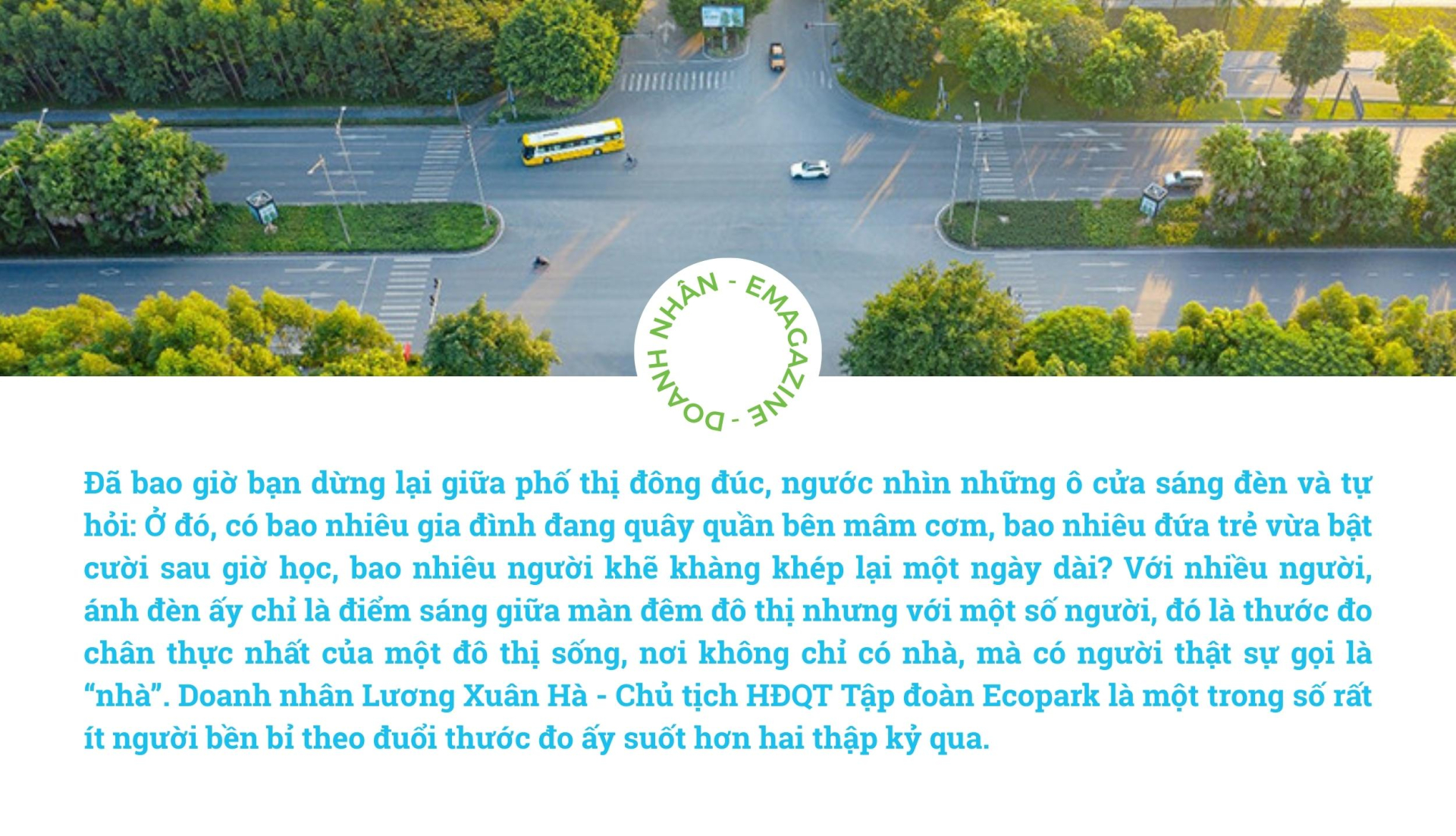 Tư duy ấy cũng là điều dễ thấy trong hành trình kiến tạo đô thị sinh thái mà doanh nhân Lương Xuân Hà – Chủ tịch HĐQT Tập đoàn Ecopark, kiên định theo đuổi suốt hai thập kỷ. Thay vì tối đa hóa diện tích thương mại, ông Hà đặt ưu tiên vào không gian xanh, mặt nước và hạ tầng sống – những yếu tố “không bán được” nhưng lại “bán được mọi thứ khác”, bởi chúng kiến tạo giá trị dài hạn cả về chất lượng sống lẫn tiềm năng tài chính cho cư dân.