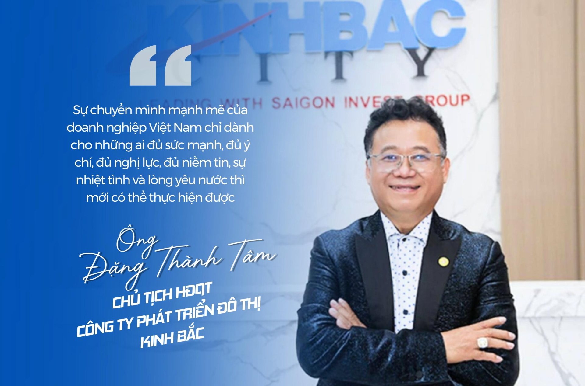 Từ vị trí ấy, ông Đặng Thành Tâm nhiều lần nhấn mạnh khủng hoảng toàn cầu không chỉ gây bất lợi mà còn là cơ hội cho ai biết đón đầu. Ông cho rằng, Kinh Bắc đã trở thành một trong những đơn vị dẫn dắt bất động sản khu công nghiệp, góp phần thu hút FDI với các đối tác tên tuổi trên thế giới như Canon, Sanyo, Foxconn, Mitac, Nippon Steel… Nhìn nhận ở khía cạnh khác, nếu biết khai thác, tận dụng và đón đầu cơ hội thì doanh nghiệp Việt Nam có thể phát triển bền vững.