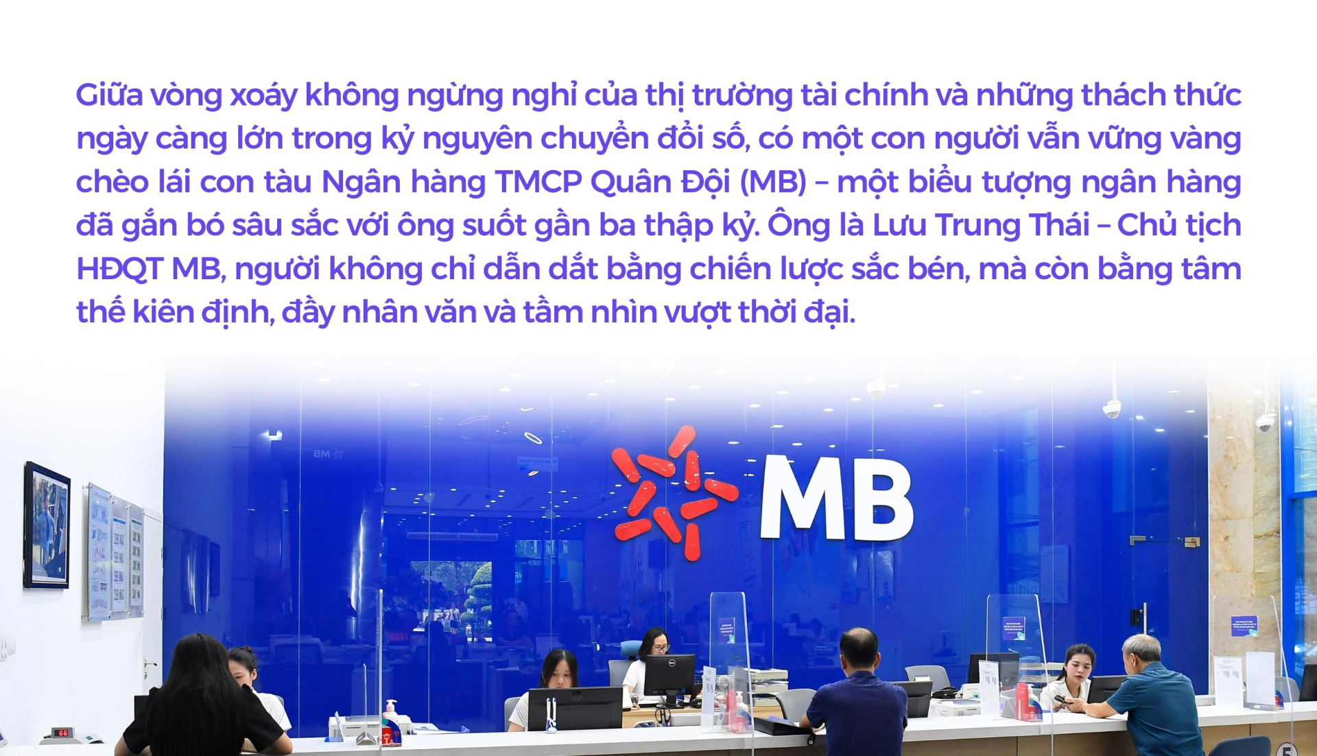 Dưới sự điều hành của Chủ tịch Lưu Trung Thái, MB không chỉ là một ngân hàng thương mại mạnh về tài chính, mà còn là một tổ chức tiên phong trong việc song hành và nâng đỡ cộng đồng doanh nghiệp tư nhân, đặc biệt là các doanh nghiệp vừa và nhỏ (SMEs).