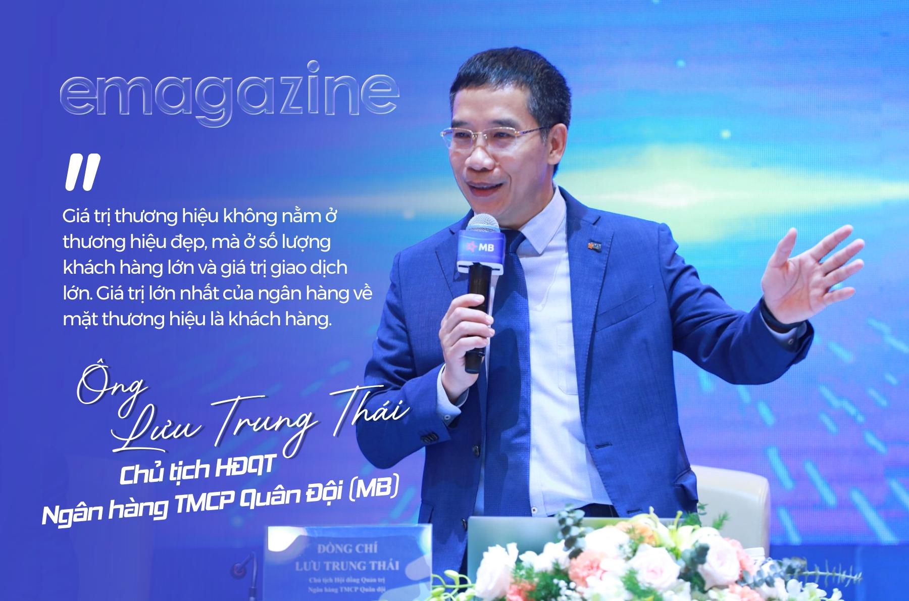Tại Đại hội đồng cổ đông thường niên năm 2025, ông Lưu Trung Thái đã nhấn mạnh một triết lý cốt lõi trong kinh doanh: "Giá trị thương hiệu không nằm ở thương hiệu đẹp, mà ở số lượng khách hàng lớn và giá trị giao dịch lớn. Giá trị lớn nhất của ngân hàng về mặt thương hiệu là khách hàng". Tuyên ngôn này không chỉ khẳng định định hướng tập trung khách hàng mà MB theo đuổi, mà còn là sợi chỉ đỏ xuyên suốt tư duy quản trị và xây dựng thương hiệu của ông – nơi niềm tin của khách hàng được đặt làm thước đo quan trọng nhất cho sự thành công bền vững.