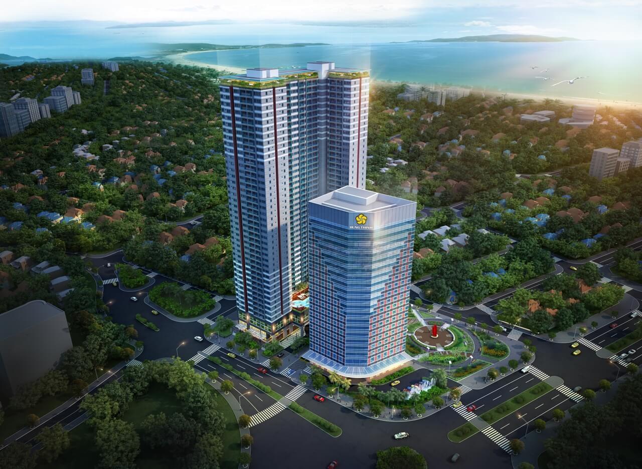Đến tháng 7/2025, tòa căn hộ 42 tầng của Grand Center Quy Nhơn tại TP. Quy Nhơn, tỉnh Bình Định cũng chính thức cất nóc, chuyển nhịp sang hoàn thiện nội – ngoại thất; dự án quy mô khoảng 7.080 m² với 824 căn hộ và khối shophouse đế thương mại ngay tâm điểm đô thị biển.