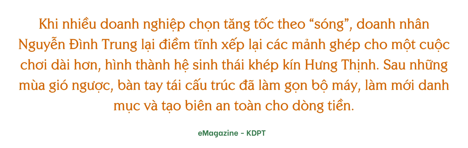 Từ nền tảng “kiềng ba chân” đã được siết chặt qua những năm gió ngược, Hưng Thịnh trong 2025 với nhịp vận hành chín chắn hơn. Bằng cách tổ chức kỷ luật, chuẩn hoá quy trình cho phép doanh nghiệp đi tiếp không cần phô trương. Mọi quyết định đều có chỗ đứng trên bảng số liệu, đó là tốc độ của sự tin cậy mà Chủ tịch Nguyễn Đình Trung theo đuổi.