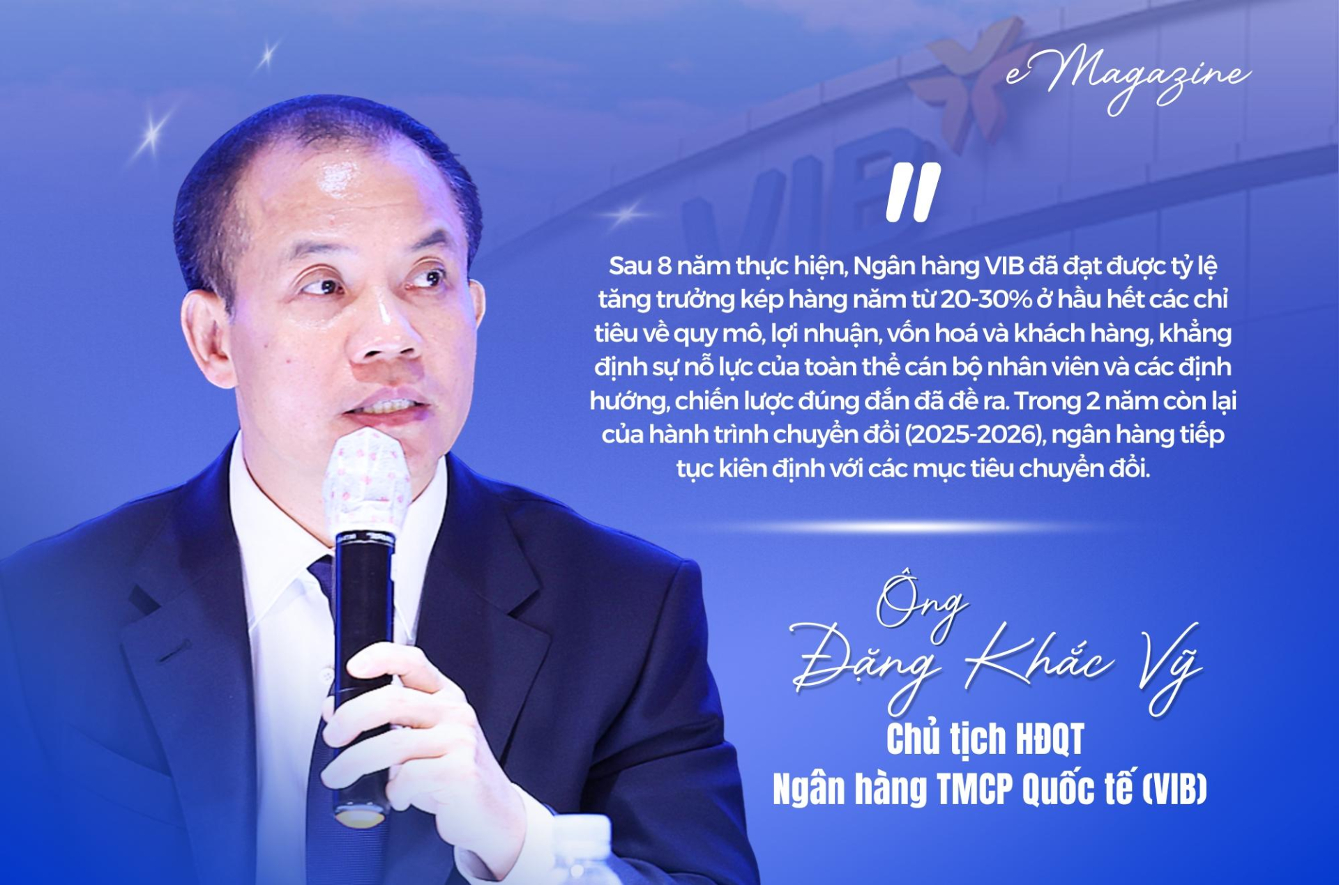 Tại Đại hội đồng cổ đông thường niên năm 2025, ông Đặng Khắc Vỹ khẳng định: “Sau 8 năm thực hiện, Ngân hàng VIB đã đạt được tỷ lệ tăng trưởng kép hàng năm từ 20-30% ở hầu hết các chỉ tiêu về quy mô, lợi nhuận, vốn hoá và khách hàng, khẳng định sự nỗ lực của toàn thể cán bộ nhân viên và các định hướng, chiến lược đúng đắn đã đề ra. Trong 2 năm còn lại của hành trình chuyển đổi (2025-2026), ngân hàng tiếp tục kiên định với các mục tiêu chuyển đổi”.