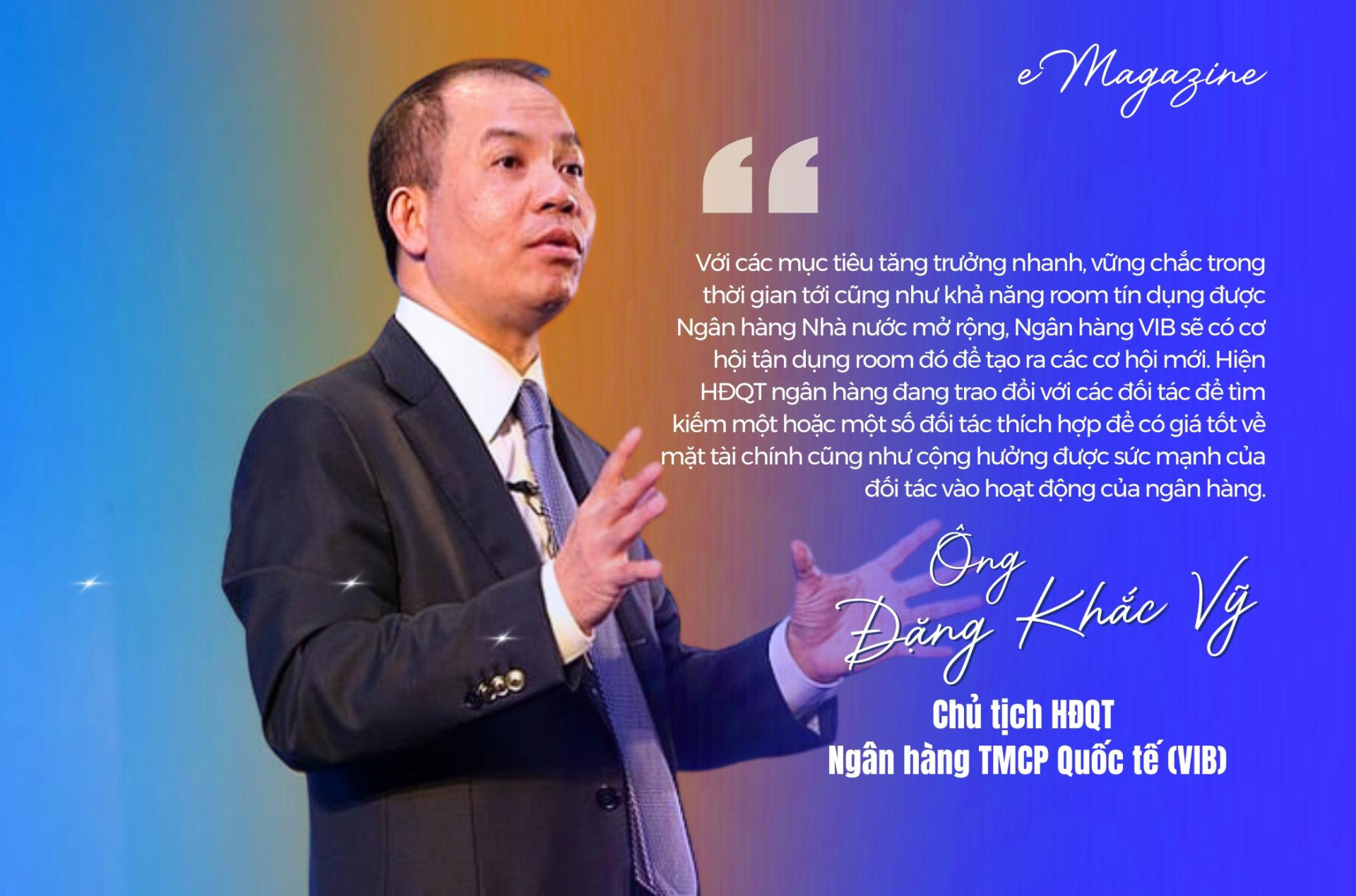 “Với các mục tiêu tăng trưởng nhanh, vững chắc trong thời gian tới cũng như khả năng room tín dụng được Ngân hàng Nhà nước mở rộng, Ngân hàng VIB sẽ có cơ hội tận dụng room đó để tạo ra các cơ hội mới. Hiện HĐQT ngân hàng đang trao đổi với các đối tác để tìm kiếm một hoặc một số đối tác thích hợp để có giá tốt về mặt tài chính cũng như cộng hưởng được sức mạnh của đối tác vào hoạt động của ngân hàng”, ông Vỹ cho biết thêm.