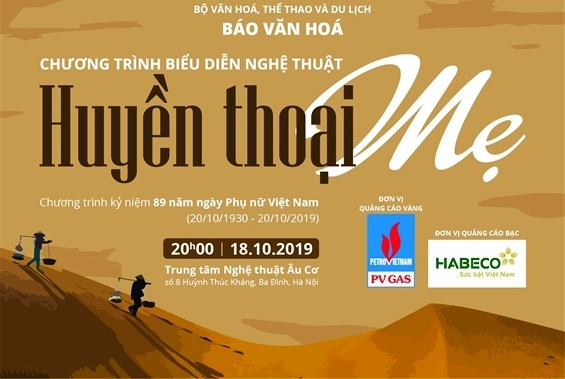 Chương trình “Huyền thoại Mẹ” sẽ diễn ra tối 18/10/2019 tại Trung tâm Nghệ thuật Âu Cơ, số 8 Huỳnh Thúc Kháng, Hà Nội.