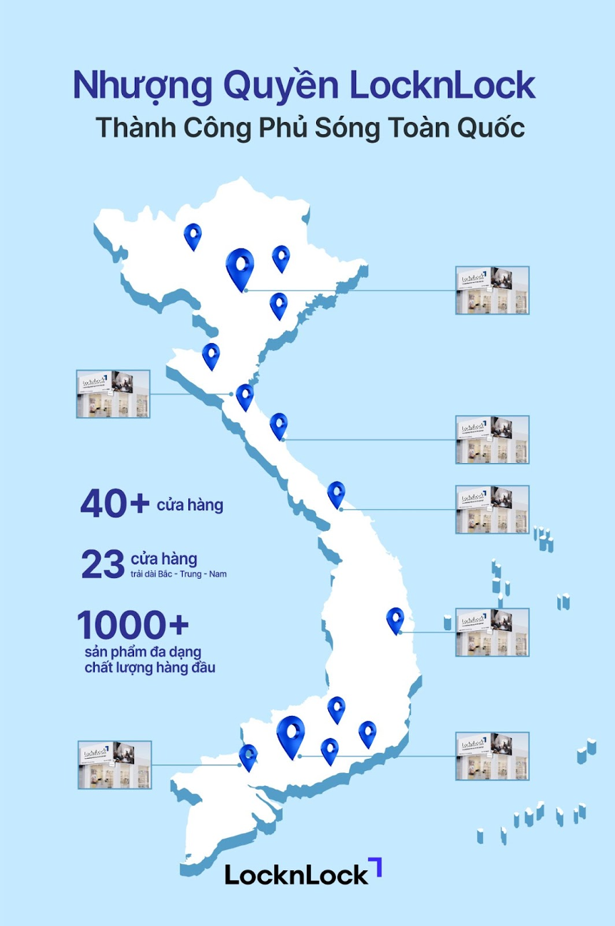 Được thành lập từ năm 1978, LocknLock hiện có mặt tại hơn 120 quốc gia, khẳng định uy tín trên thị trường gia dụng quốc tế. Tại Việt Nam, thương hiệu không chỉ cung cấp sản phẩm, mà còn xây dựng mô hình kinh doanh bền vững, an toàn cho các nhà đầu tư.