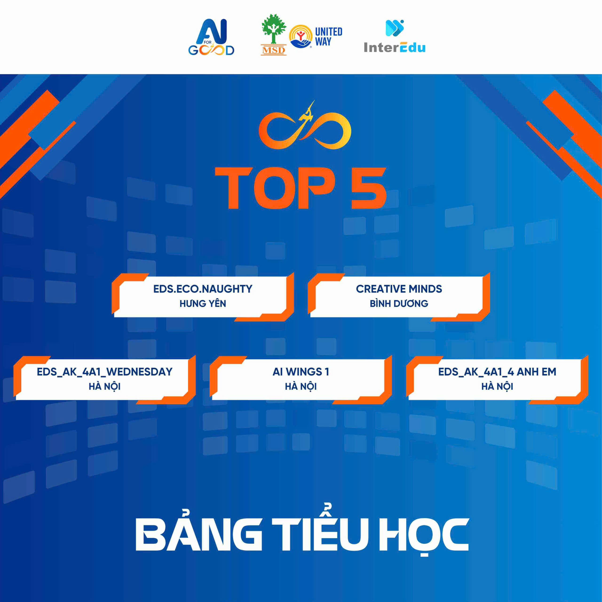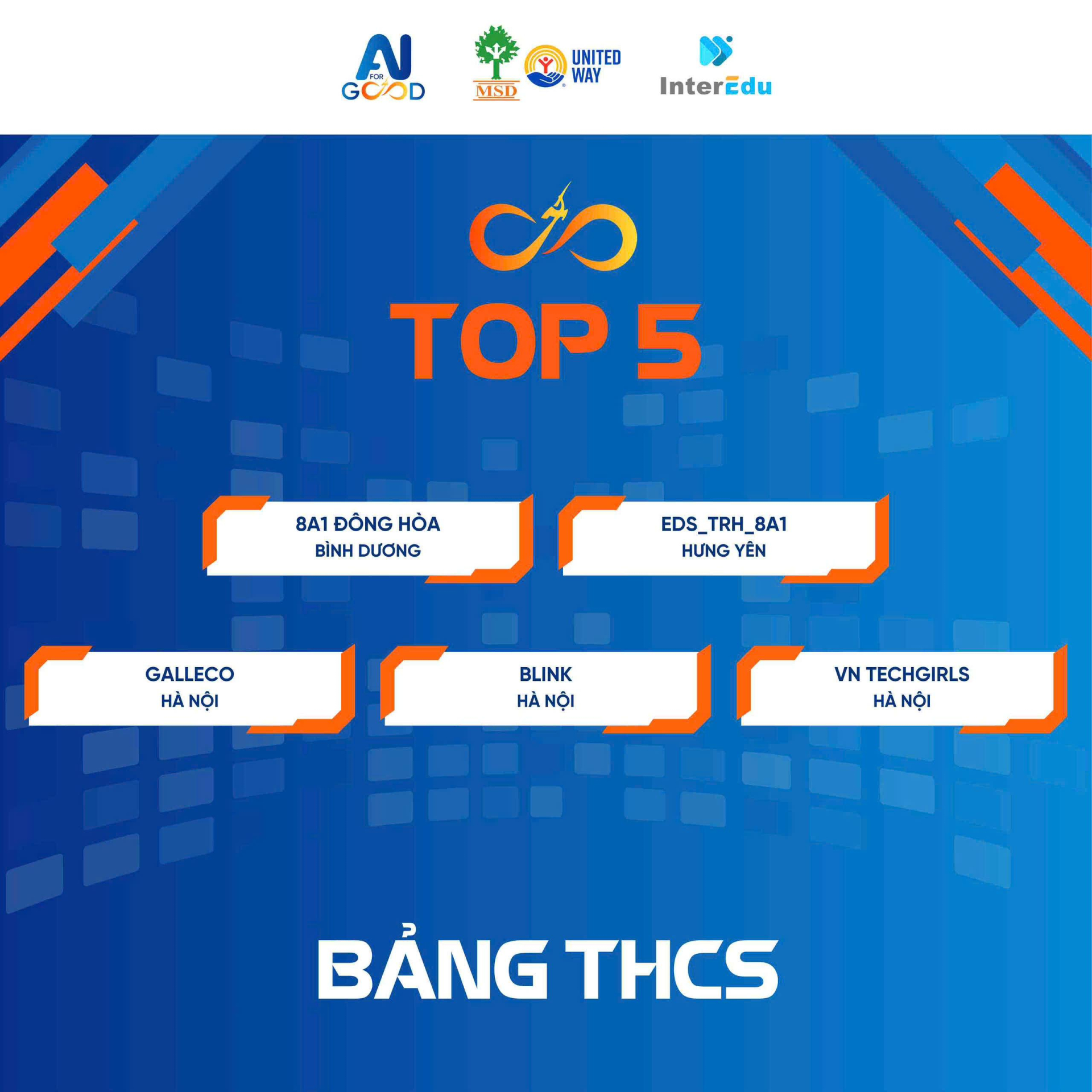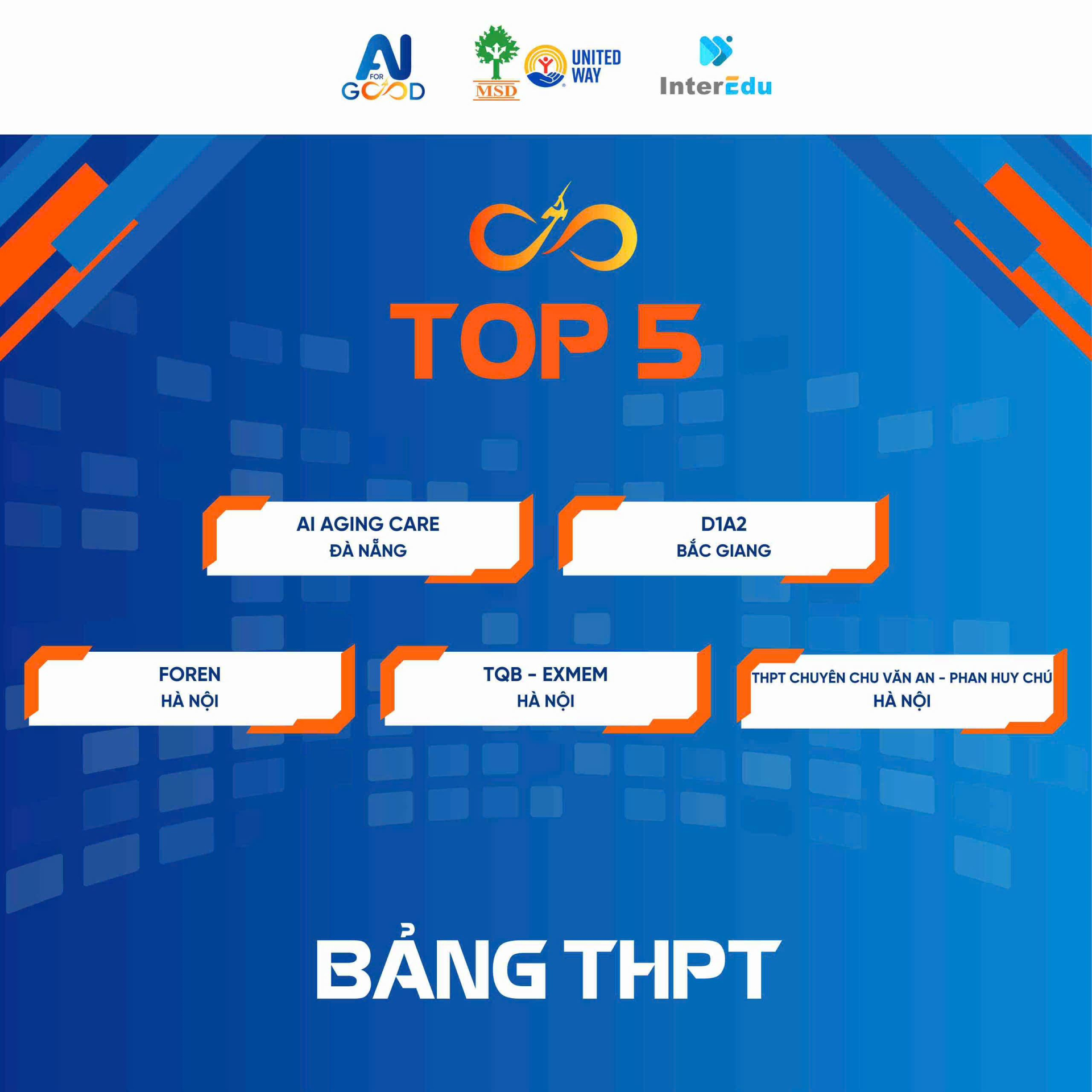 Cuộc thi AI for Good Việt Nam 2025 - Cuộc thi đầu tiên về AI for Good của Việt Nam (Made in Vietnam), là một sân chơi giáo dục dành cho học sinh phổ thông cả 3 cấp trên toàn quốc nhằm ứng dụng Trí tuệ nhân tạo (AI) vào giải quyết các vấn đề thực tiễn, đóng góp vào phát triển bền vững. Cuộc thi AI for Good Việt Nam 2025 được tổ chức bởi Viện Nghiên cứu quản lý Phát triển bền vững (MSD United Way Việt Nam) và Tổ chức Giáo dục InterEdu, có sự đồng hành của Cộng đồng Quản trị quyền trẻ em và Đối tác Không để ai bị bỏ lại phía sau.