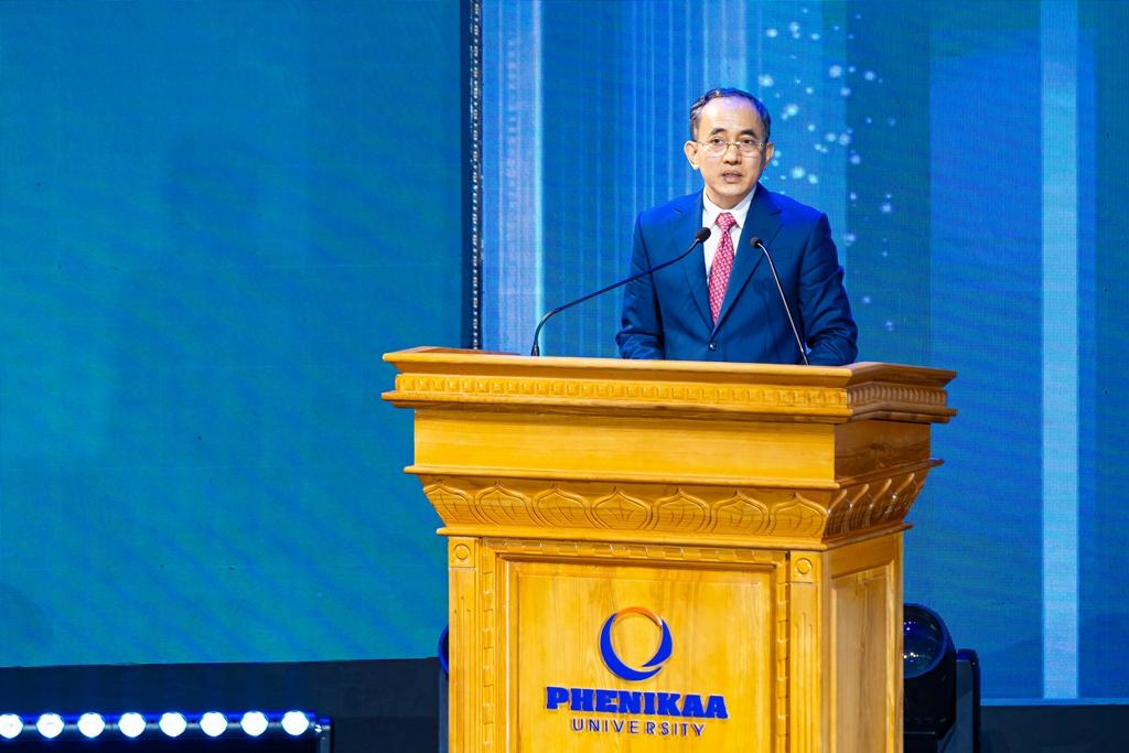 Phát biểu tại buổi lễ, thầy Phạm Thành Huy - Hiệu trưởng Đại học Phenikaa cho biết, trải qua hơn 6 năm tái cấu trúc, xây dựng và phát triển, Đại học Phenikaa đã từng bước phát triển trở thành một cơ sở giáo dục đại học đa ngành, đa lĩnh vực, đại học trải nghiệm, nơi môi trường đào tạo, nghiên cứu khoa học và sự tự do sáng tạo cùng đồng hành để tạo cơ hội bình đẳng trong việc tiếp cận đại học chất lượng cao, tạo ra bước đột phá trong khoa học - công nghệ.