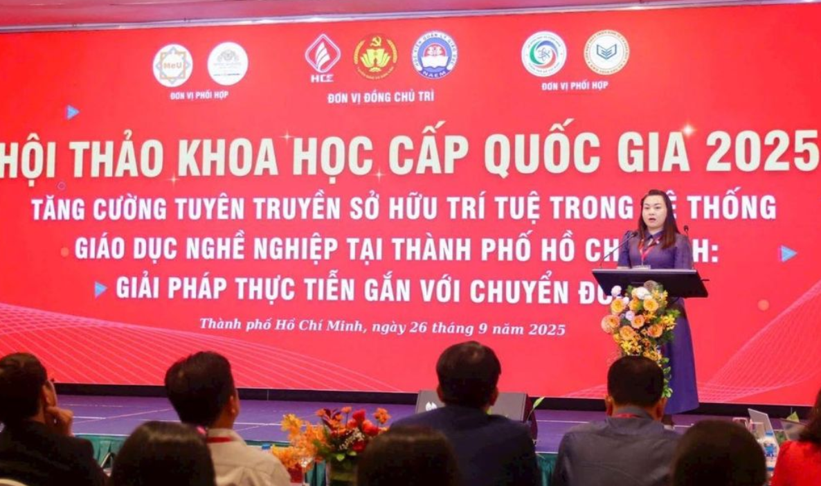 Tại Hội thảo khoa học quốc gia với chủ đề: “Đẩy mạnh tuyên truyền sở hữu trí tuệ trong hệ thống giáo dục nghề nghiệp tại TP.HCM: Giải pháp thực tiễn gắn với chuyển đổi số” diễn ra mới đây, ThS. Lê Thị Phương Lan, Trưởng phòng Khoa giáo (Ban Tuyên giáo - Dân vận Thành ủy TP.HCM) nhấn mạnh trong bối cảnh hội nhập quốc tế ngày càng sâu rộng, sở hữu trí tuệ (SHTT) có vai trò đặc biệt quan trọng trong việc bảo hộ thành quả sáng tạo, khuyến khích đổi mới và nâng cao năng lực cạnh tranh quốc gia.