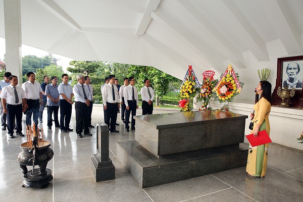 Phó Thủ tướng Vũ Đức Đam và đoàn công tác dâng hương, dâng hoa tại Khu Di tích cụ Phó bảng Nguyễn Sinh Sắc. Ảnh: VGP/Đình Nam