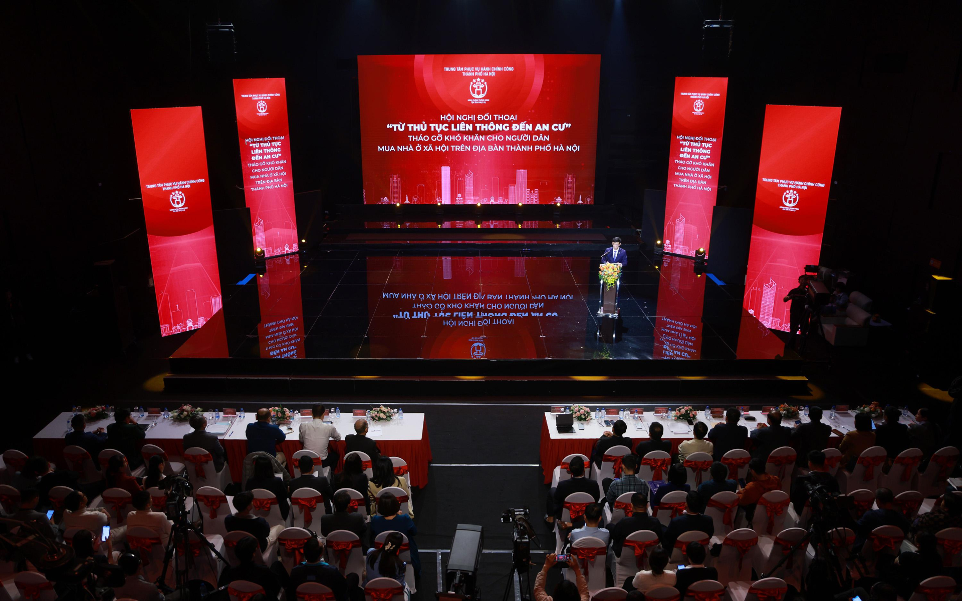 Nhằm tháo gỡ vướng mắc, giúp người dân tiếp cận nhà ở xã hội thuận lợi hơn, ngày 3/12, Trung tâm Phục vụ hành chính công thành phố Hà Nội phối hợp các sở, ngành, chủ đầu tư dự án phát triển nhà ở xã hội và Đài Phát thanh - Truyền hình Hà Nội tổ chức Hội nghị đối thoại “Từ thủ tục liên thông đến an cư: Tháo gỡ khó khăn cho người dân mua nhà ở xã hội trên địa bàn thành phố Hà Nội”.