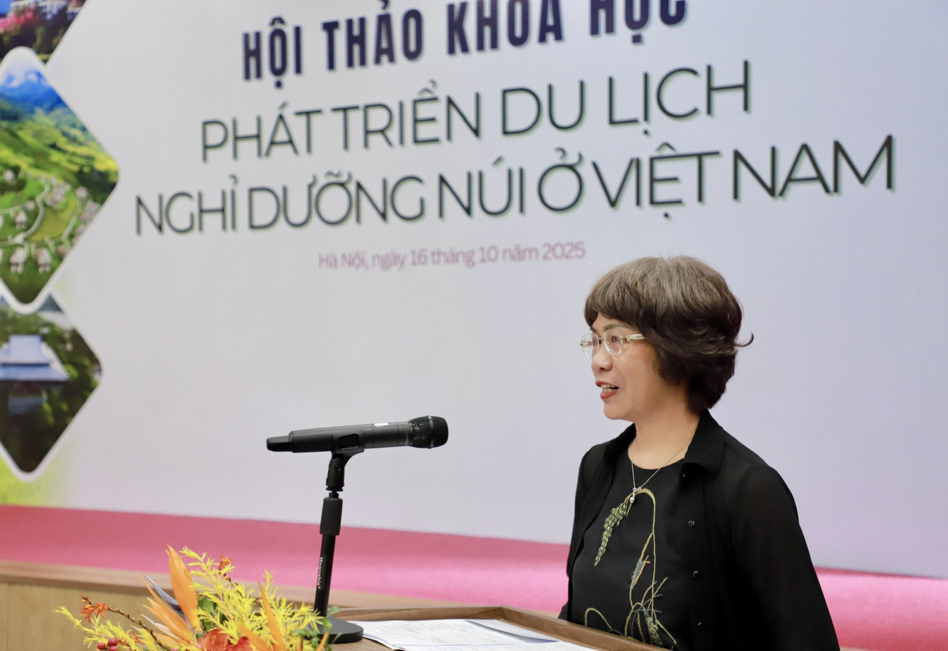 Phát biểu đề dẫn Hội thảo, ThS. Nguyễn Thị Lan Hương - Viện Văn hóa, Nghệ thuật, Thể thao và Du lịch Việt Nam cho biết, du lịch nghỉ dưỡng núi - một trong những kiểu loại hình đặc thù đang trở thành xu hướng được nhiều địa phương, doanh nghiệp quan tâm. Với lợi thế về cảnh quan thiên nhiên hùng vĩ, hệ sinh thái đa dạng, không gian văn hóa bản địa đặc sắc, các vùng núi của Việt Nam có tiềm năng to lớn để phát triển các sản phẩm nghỉ dưỡng chất lượng cao, khác biệt và bền vững.