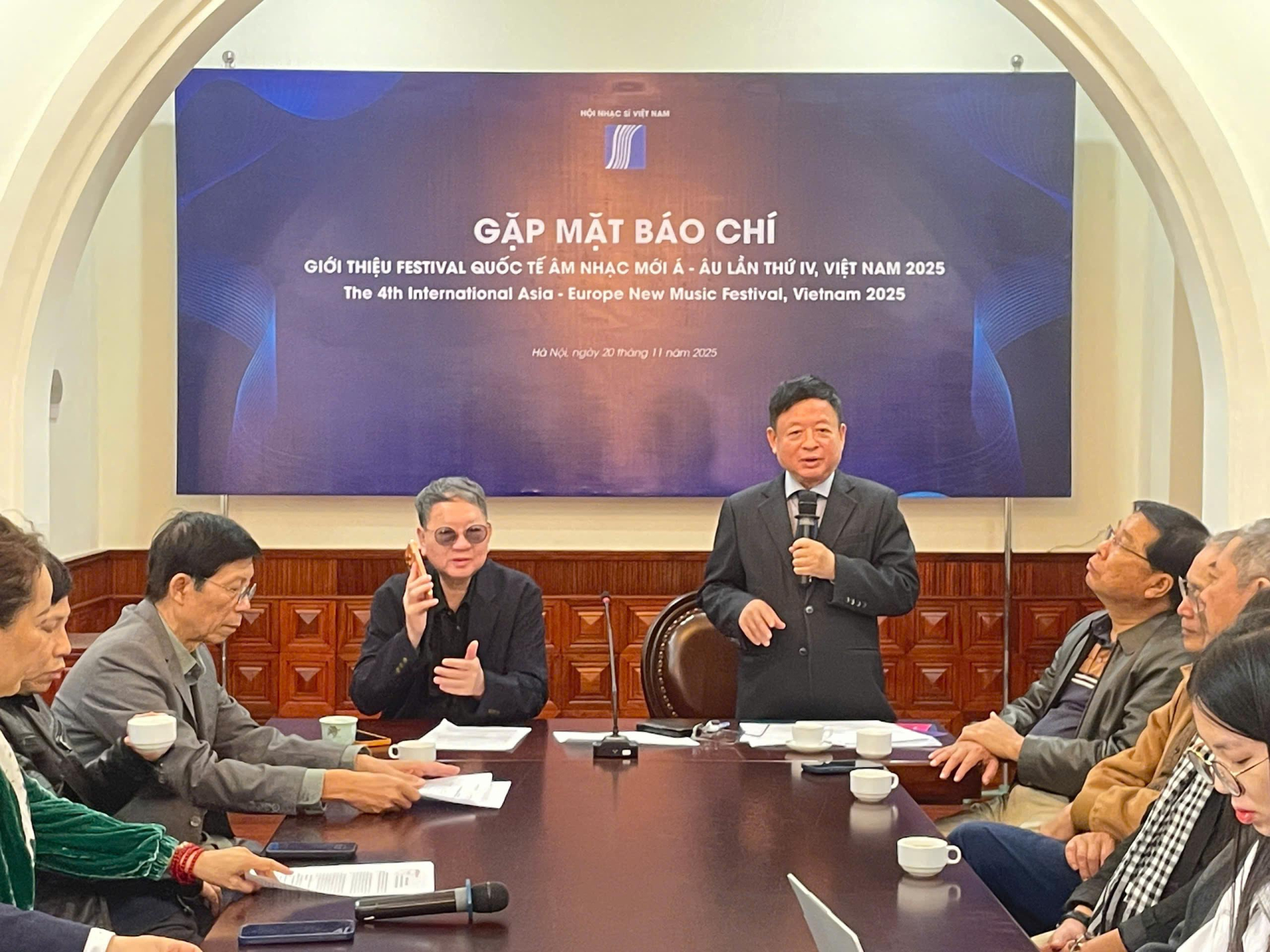 Phát biểu tại buổi họp báo, PGS.TS, Nhạc sĩ Đỗ Hồng Quân - Chủ tịch Liên hiệp các Hội Văn học, Nghệ thuật Việt Nam cho biết, Festival quốc tế âm nhạc mới Á - Âu lần thứ IV năm 2025 tại Việt Nam sẽ có sự tham gia của 300 nhạc sĩ, nghệ sĩ đến từ 15 quốc gia, vùng lãnh thổ, trong đó có rất nhiều nhạc sĩ nổi tiếng của thế giới.