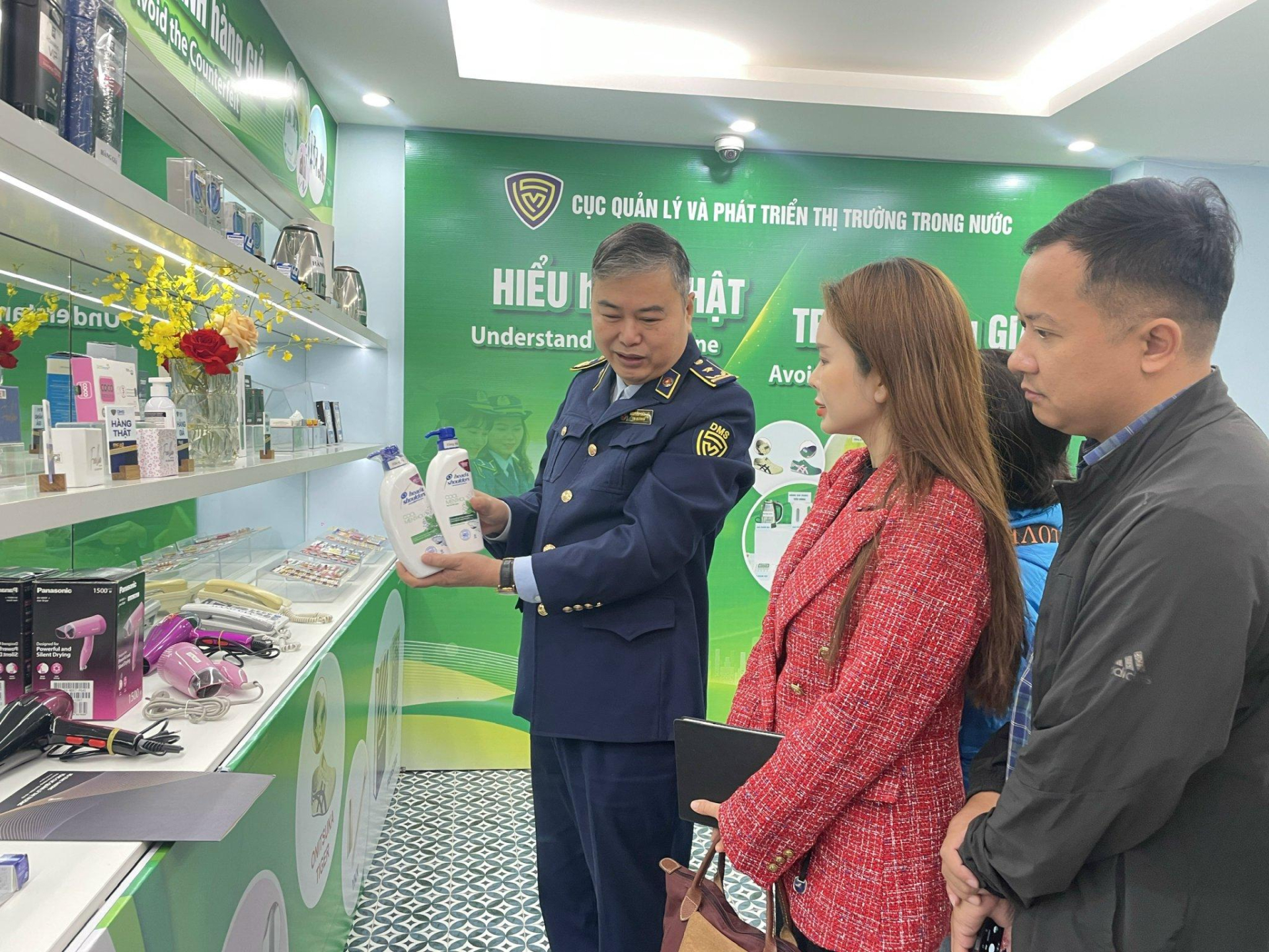 “Tại các khu trưng bày, cán bộ Quản lý thị trường trực tiếp hướng dẫn người dân cách nhận biết hàng giả thông qua tem, nhãn, mã QR, công nghệ truy xuất nguồn gốc và những dấu hiệu đặc trưng của từng nhóm sản phẩm”, ông Linh thông tin thêm.