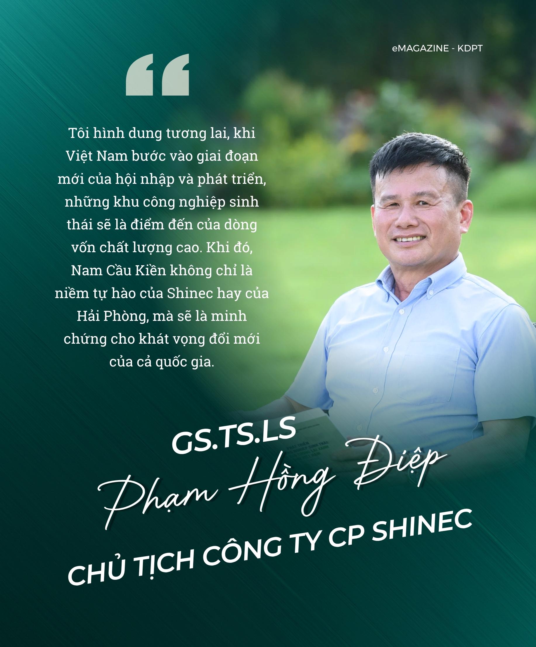 Tôi hình dung tương lai, khi Việt Nam bước vào giai đoạn mới của hội nhập và phát triển, những khu công nghiệp sinh thái sẽ là điểm đến của dòng vốn chất lượng cao. Khi đó, Nam Cầu Kiền không chỉ là niềm tự hào của Shinec hay của Hải Phòng, mà sẽ là minh chứng cho khát vọng đổi mới của cả quốc gia.