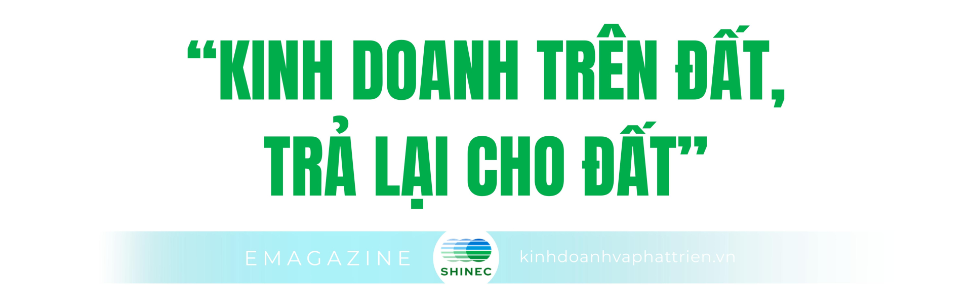 Chính triết lý này đã giúp tôi và Shinec thành này không dừng ở Nam Cầu Kiền. Nó trở thành kim chỉ nam cho tất cả những gì tôi và Shinec đang theo đuổi: Từ mở rộng sang Quảng Ninh, Lào Cai, đến Gia Lai, Hậu Giang. Mỗi vùng đất mới lại là một cuộc đối thoại mới với thiên nhiên, nhưng tinh thần vẫn không đổi: Kinh doanh phải gắn với trách nhiệm, lấy đi phải đi cùng trả lại.