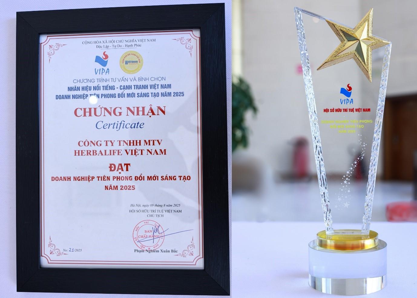 “Chúng tôi vinh dự và tự hào tiếp tục được Hội Sở hữu Trí tuệ Việt Nam trao Chứng nhận Top 10 nhãn hiệu nổi tiếng Việt Nam và Doanh nghiệp tiên phong đổi mới sáng tạo năm 2025. Sự công nhận này một lần nữa khẳng định sự tin tưởng và ủng hộ của khách hàng, công chúng và các bên liên quan đối với những nỗ lực và đóng góp của Herbalife trong việc góp phần nuôi dưỡng sức khỏe và hạnh phúc của con người và cộng đồng tại Việt Nam”, ông Vũ Văn Thắng, Tổng Giám đốc Herbalife Việt Nam và Campuchia chia sẻ.