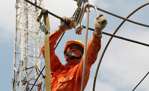 Công nhân Điện lực Hà Nội sửa chữa trên đường dây. Ảnh: EVN