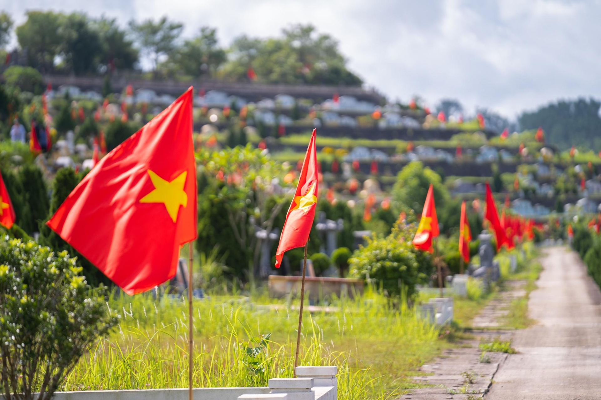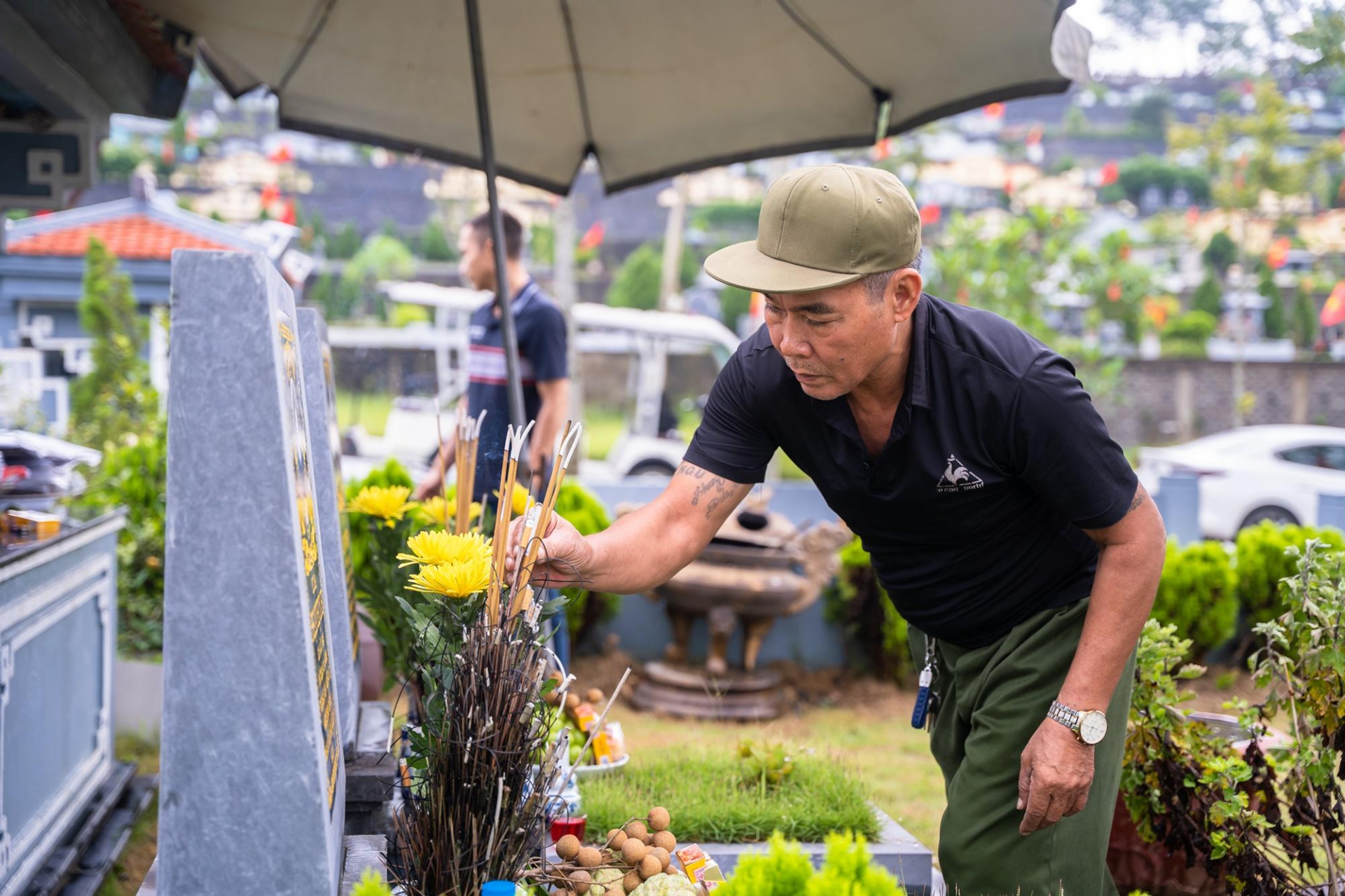 Tại nghĩa trang, hình ảnh hàng vạn lá cờ đỏ sao vàng tung bay trong gió đã khiến gia đình bà Ngọc không khỏi xúc động. Không gian linh thiêng, trang trọng như thể gắn kết quá khứ và hiện tại trong cùng một nhịp đập thiêng liêng của dân tộc.