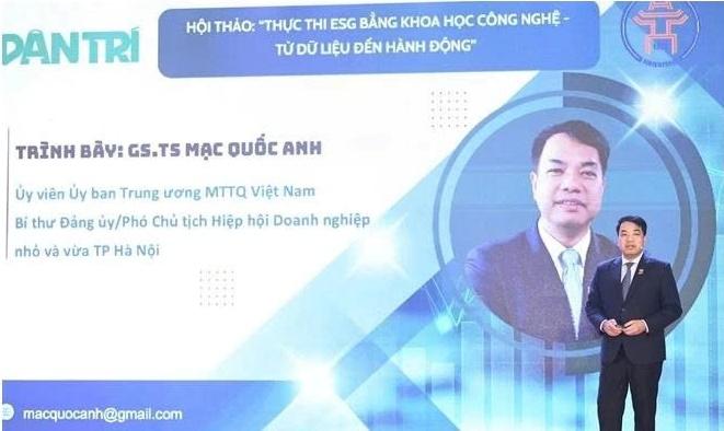 GS.TS Mạc Quốc Anh - Phó chủ tịch kiêm Tổng thư ký Hiệp hội Doanh nghiệp nhỏ và vừa TP Hà Nội, Viện trưởng Viện Kinh tế và Phát triển Doanh nghiệp cũng nhấn mạnh rằng ESG đang trở thành yêu cầu mang tính sống còn đối với doanh nghiệp Việt Nam trong giai đoạn mới.