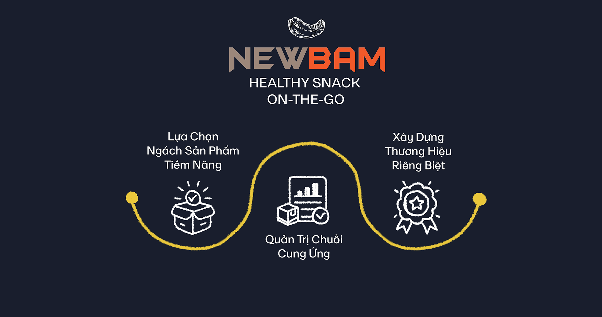 Một chiến lược đổi mới sản phẩm toàn diện đã được hình thành. Ý tưởng về món ăn vặt lành mạnh mà tiện lợi được hiện thực hóa. Thay vì đóng gói trong các hộp lớn 250g hay 500g như truyền thống, Newbam chọn bao bì dạng gói nhỏ 42g và 54g – một khẩu phần hoàn hảo cho một lần dùng, dễ dàng nằm gọn trong túi xách, ngăn bàn làm việc hay cặp sách của trẻ nhỏ.