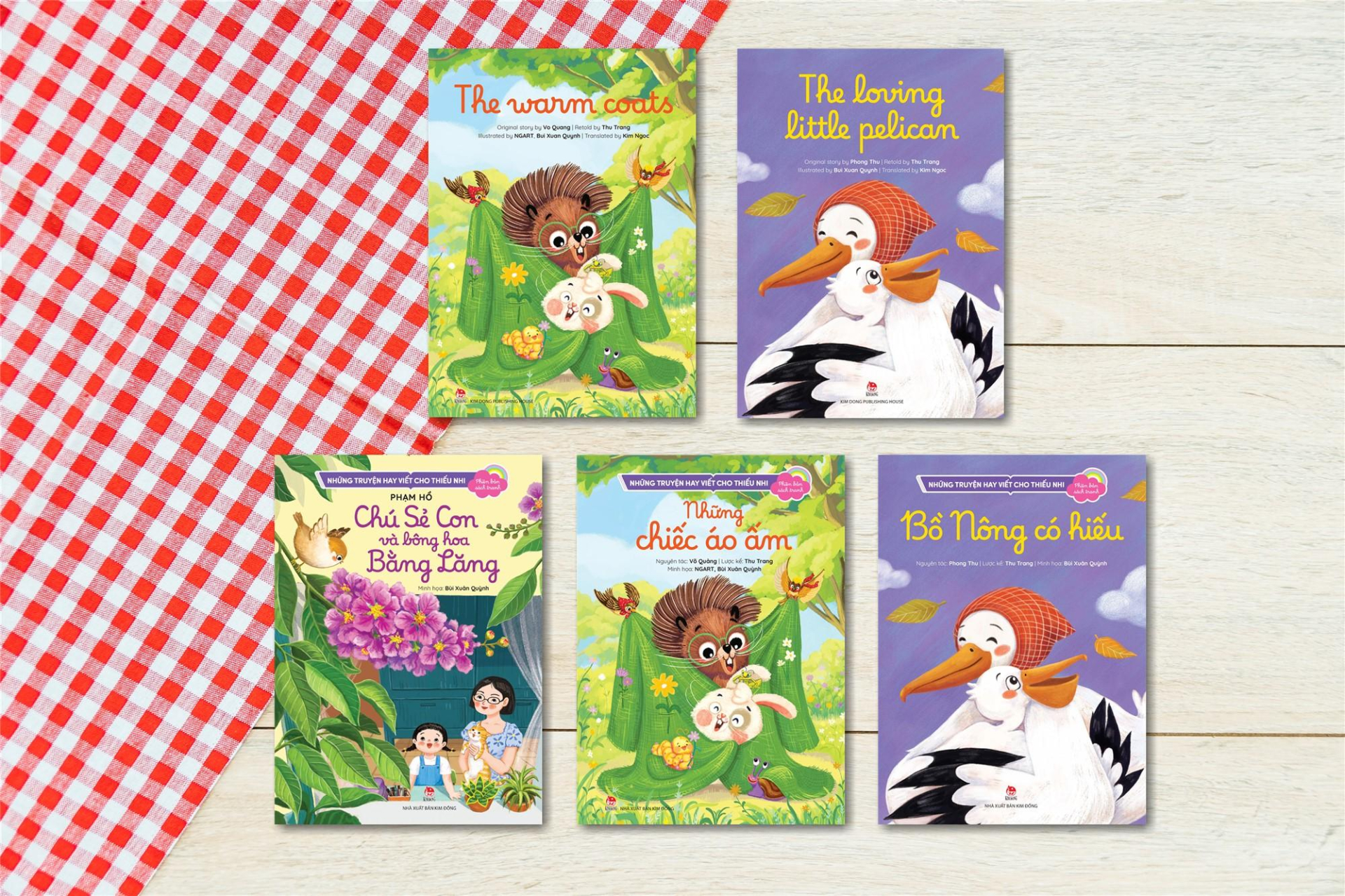 Bộ “Những truyện hay viết cho thiếu nhi – phiên bản sách tranh” gồm Những chiếc áo ấm (Võ Quảng), Chú sẻ con và bông hoa Bằng Lăng (Phạm Hổ), Bồ Nông có hiếu (Phong Thu) cũng được phát hành song song bản tiếng Anh, giới thiệu văn học Việt Nam tới bạn đọc quốc tế.