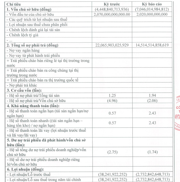 Điểm đáng ghi nhận là trong khi kết quả kinh doanh bết bát thì nợ phải trả của công ty giảm đáng kể, từ 22.065 tỷ đồng xuống còn 14.514 tỷ đồng, tức giảm gần 7.500 tỷ đồng so với cùng kỳ năm ngoái.