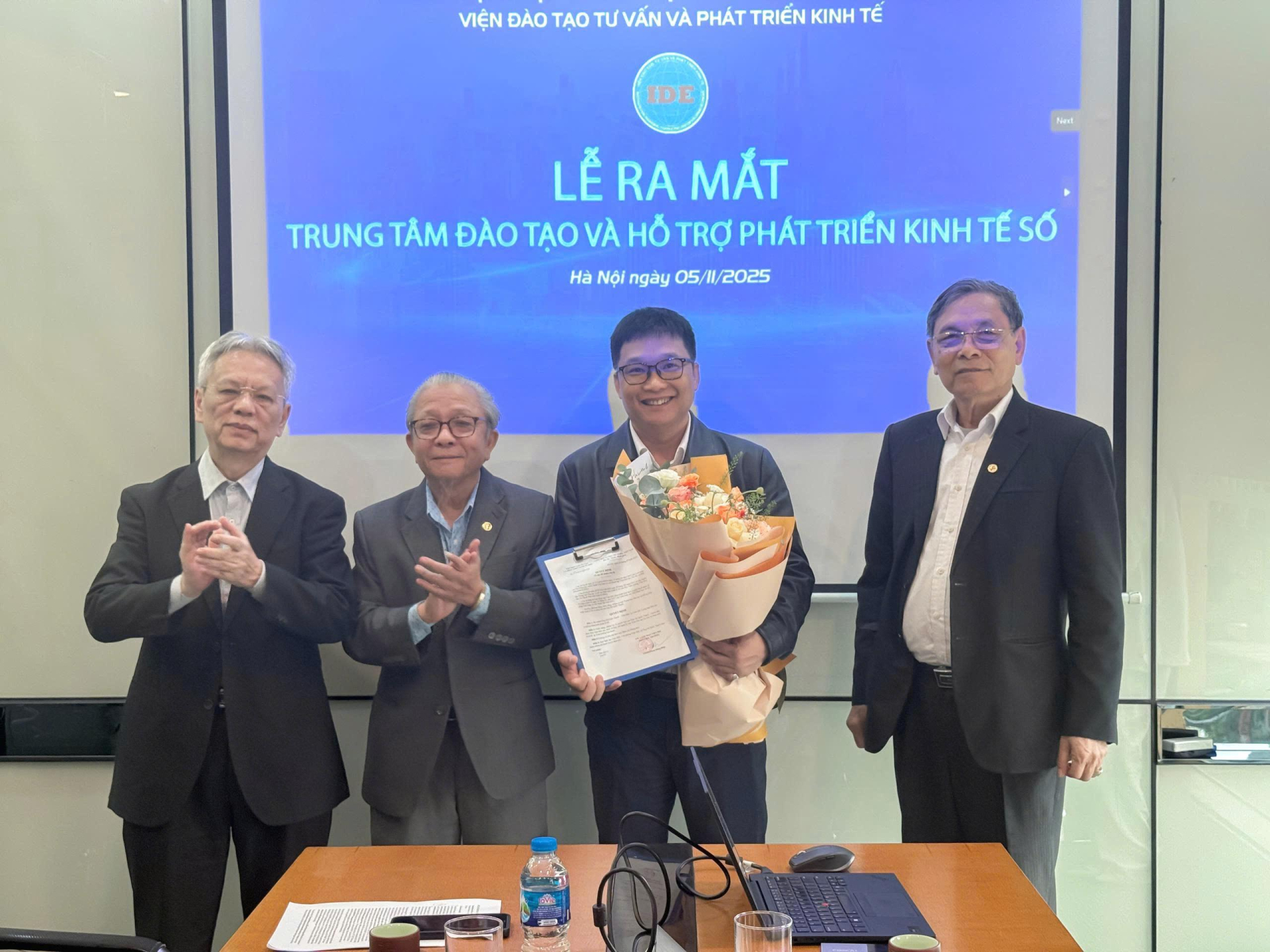 Tại lễ ra mắt lãnh đạo Viện IDE đã trao Quyết định thành lập Trung tâm Đào tạo và Hỗ trợ Phát triển Kinh tế Số, Đồng thời đã trao quyết định bộ nhiệm Giám đốc Trung tâm cho ông Hà Quốc Thạch.