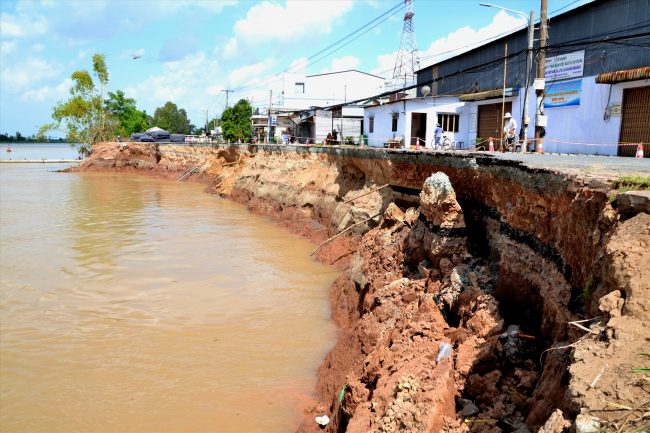 Tình hình sạt lở dọc bờ sông Hậu, diễn ra khá khốc liệt, kể cả mùa mưa lẫn mùa khô – từ tuyến sông, kênh rạch nhỏ đến kênh, sông lớn làm đảo lộn và đe dọa cuộc sống người dân. Như vụ sạt lở xảy ra ở Quốc lộ 91 ven sông Hậu ngày 27, 28-5-2020, ăn sâu vào 1/3 mặt tiền, làm cho 27 hộ dân phải di dời khẩn cấp.