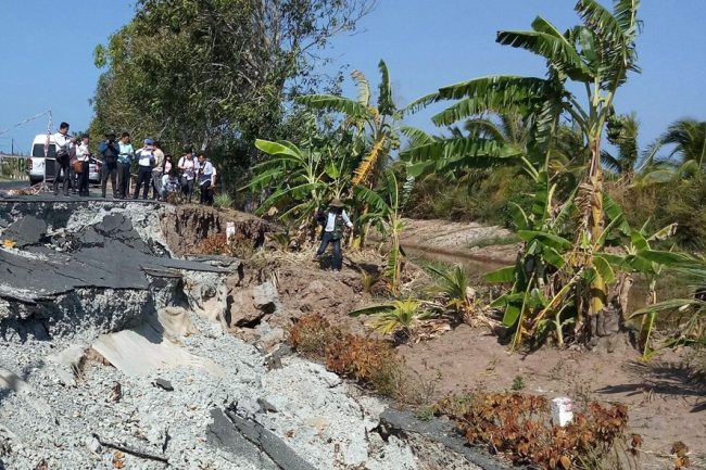 Nhiều đoạn đường giao thông tại ĐBSCL bị sạt lở nghiêm trọng.