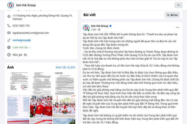 Tập đoàn Sơn Hải lên tiếng khi bị nêu tên trong loạt sai phạm tại dự án 500 tỷ ở Quảng Trị