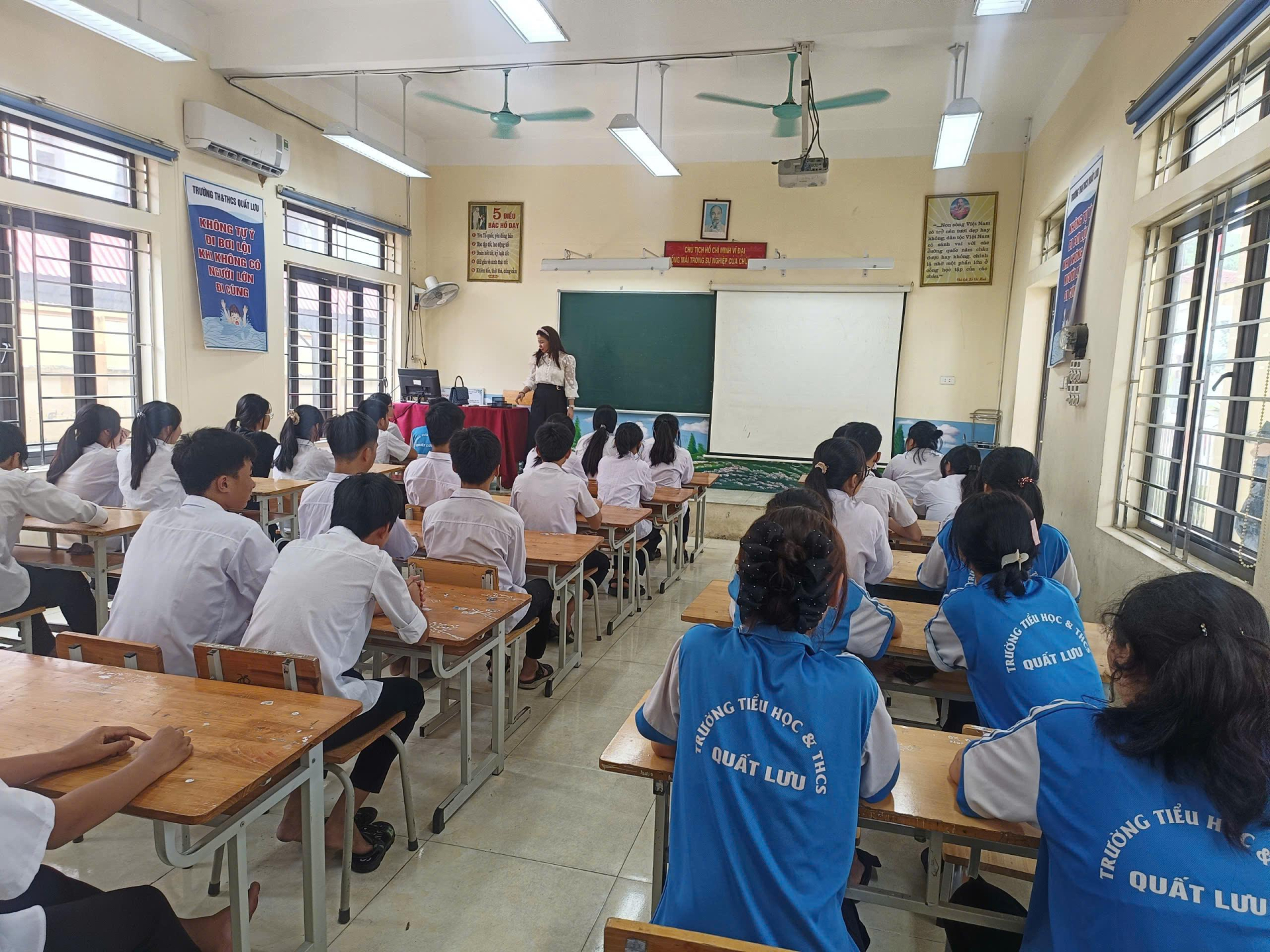 Bên cạnh đó, Trường Tiểu học & THCS Quất Lưu chú trọng đổi mới công tác quản lý và giảng dạy. Nhà trường đã ứng dụng công nghệ thông tin, phần mềm quản lý và AI trong điều hành, hỗ trợ soạn giảng, mang lại hiệu quả rõ rệt. Nhiều giáo viên đã thành thạo trong việc tích hợp công nghệ AI vào giáo án điện tử, giúp tiết học sinh động, học sinh hứng thú tiếp thu, tăng hiệu quả dạy và học. Nhiều giáo viên tham gia các cuộc thi giáo viên giỏi do cấp trên tổ chức đạt nhiều giải cao, khẳng định tên tuổi của nhà trường.