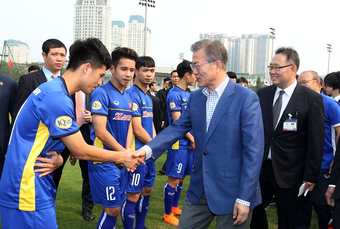 Tổng thống Hàn Quốc Moon Jae In động viên các cầu thủ U23 Việt Nam giữ tinh thần và nhiệt huyết đã thể hiện ở Vòng chung kết Giải vô địch U23 châu Á năm 2018 để đạt được đạt được nhiều thành tích cao hơn nữa tại các giải đấu thể thao khu vực và quốc tế.
