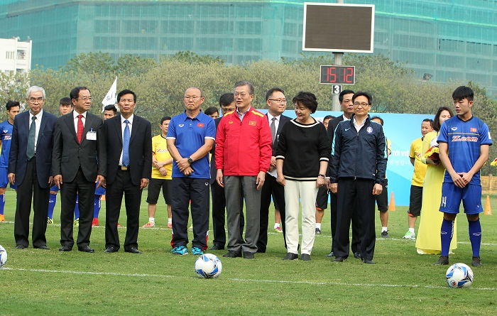 Tại buổi giao lưu, Tổng thống Hàn Quốc Moon Jae In bày tỏ ấn tượng việc đội tuyển quốc gia U23 Việt Nam giành thành tích cao tại giải đấu U23 châu Á dưới sự dẫn dắt của Huấn luyện viên Hàn Quốc Park Hang-seo. Tổng thống Moon Jae In chia sẻ đã trực tiếp xem trận chung kết giữa đội tuyển U23 Việt Nam và U23 Uzbekistan và cho rằng nếu không có bão tuyết thì chắc chắn đội tuyển U23 Việt Nam đã giành chức vô địch.