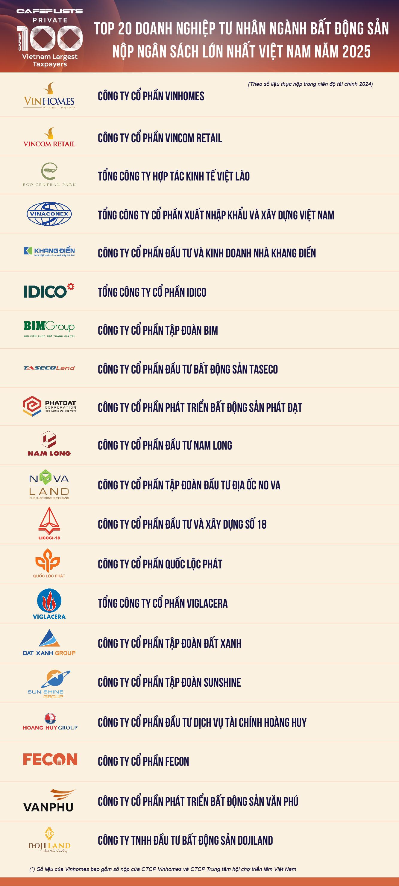 Top 20 doanh nghiệp bất động sản tư nhân nộp ngân sách lớn nhất Việt Nam: Vinhomes đóng góp hơn 40.000 tỷ đồng
