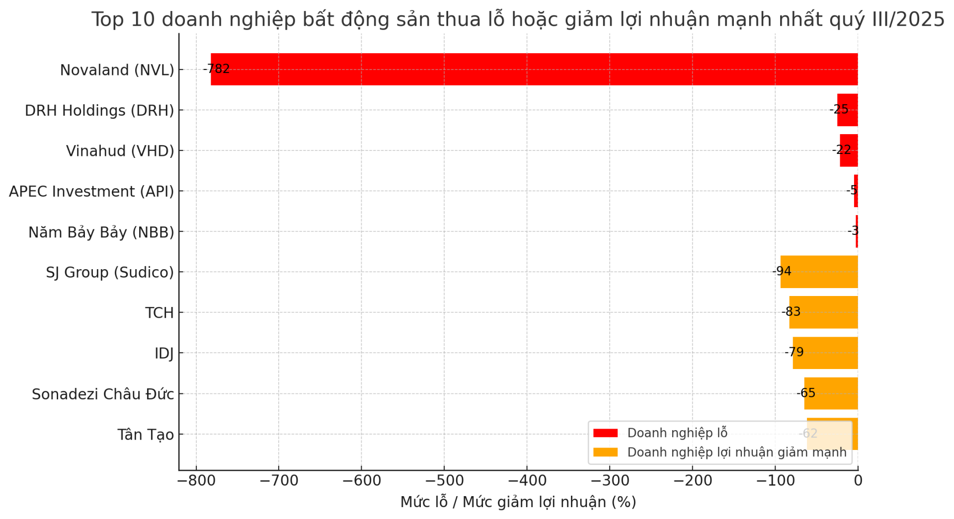 Top doanh nghiệp bất động sản làm ăn bết bát nhất quý III/2025: Novaland đầu bảng, nhiều “ông lớn” hụt hơi