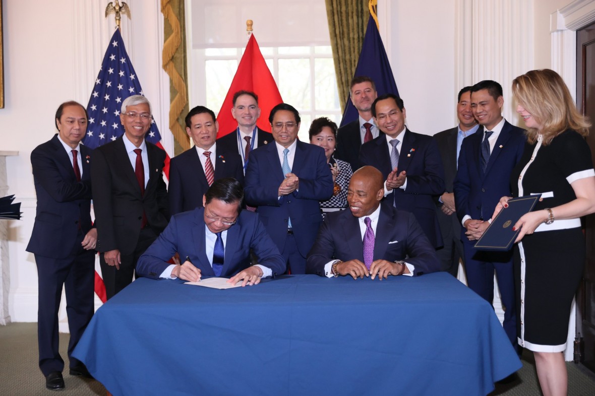 Nhân dịp này, Thủ tướng Phạm Minh Chính đã chứng kiến Chủ tịch UBND TP.HCM Phan Văn Mãi và Thị trưởng New York ký kết biên bản ghi nhớ thiết lập quan hệ kết nghĩa giữa TP. New York và TP.HCM.