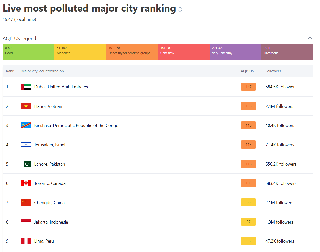 Hà Nội là thành phố lớn ô nhiễm thứ 2 thế giới ngày 14/08/2025