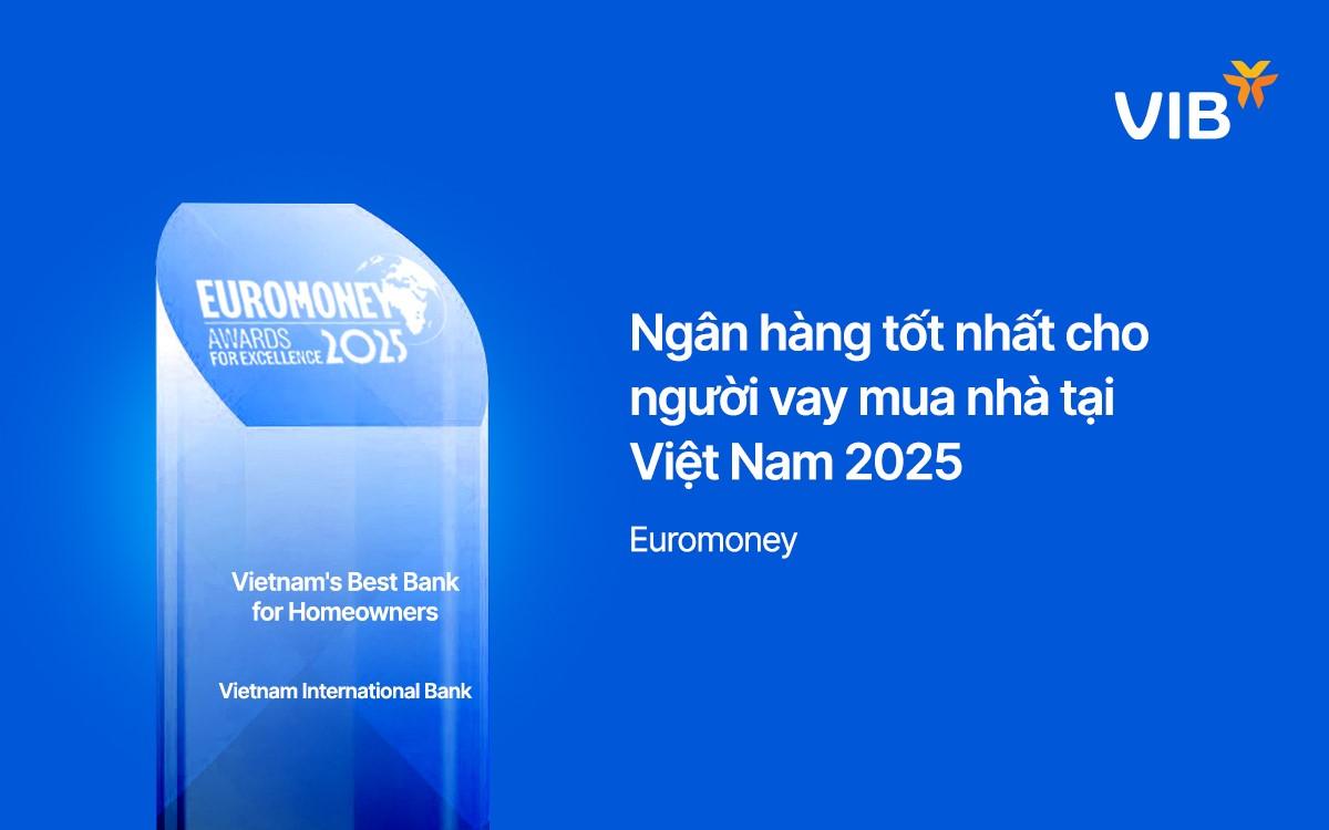 Tại lễ trao giải Awards for Excellence 2025 - một trong những giải thưởng uy tín nhất ngành tài chính toàn cầu do tạp chí Euromoney tổ chức, VIB đã xuất sắc giành giải "Ngân hàng tốt nhất cho người mua nhà tại Việt Nam" (Best Bank for Homeowners - Vietnam).
