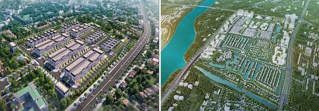 Phối cảnh 2 dự án Vinhomes Dream City (trái) và Vinhomes Cổ Loa (phải).