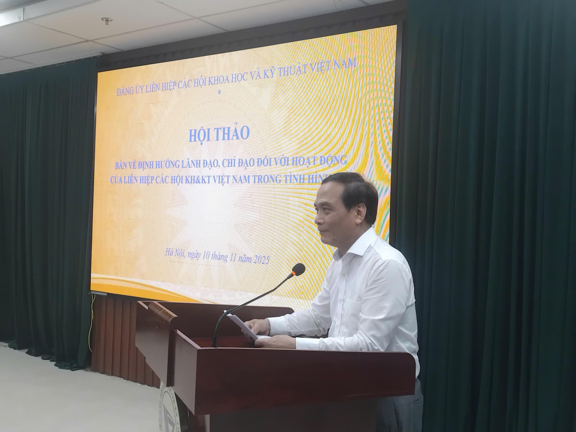 Chia sẻ tại hội thảo, Ủy viên Ban Thường vụ Đảng ủy, Tổng Thư ký Liên hiệp Hội Việt Nam Nguyễn Quyết Chiến cho biết, Liên hiệp Hội Việt Nam có 127 hội thành viên (gồm 93 Hội ngành toàn quốc, 34 Liên hiệp hội tỉnh, thành phố), 03 đơn vị sự nghiệp và 570 tổ chức KH&CN trực thuộc. Các Liên hiệp hội tỉnh, thành phố đều có chi bộ đảng trực thuộc cấp ủy địa phương; nhiều Hội ngành toàn quốc và đơn vị trực thuộc có chi bộ đảng, trong đó phần lớn các chi bộ nằm trong số 56 chi bộ đảng trực thuộc Đảng bộ Liên hiệp Hội Việt Nam.